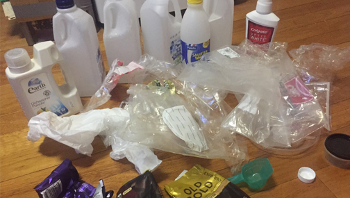 One month's worth of household plastic waste for a couple during the Plastic Free July challenge.