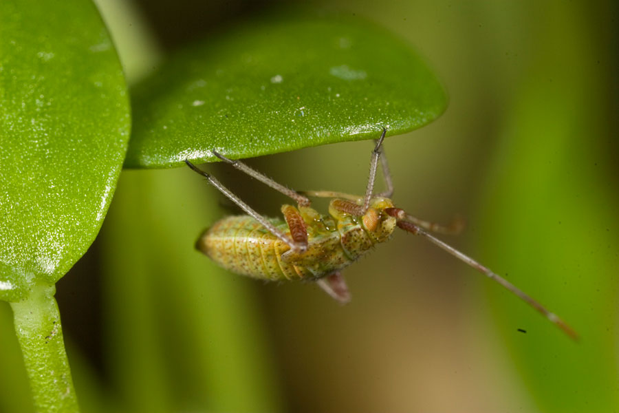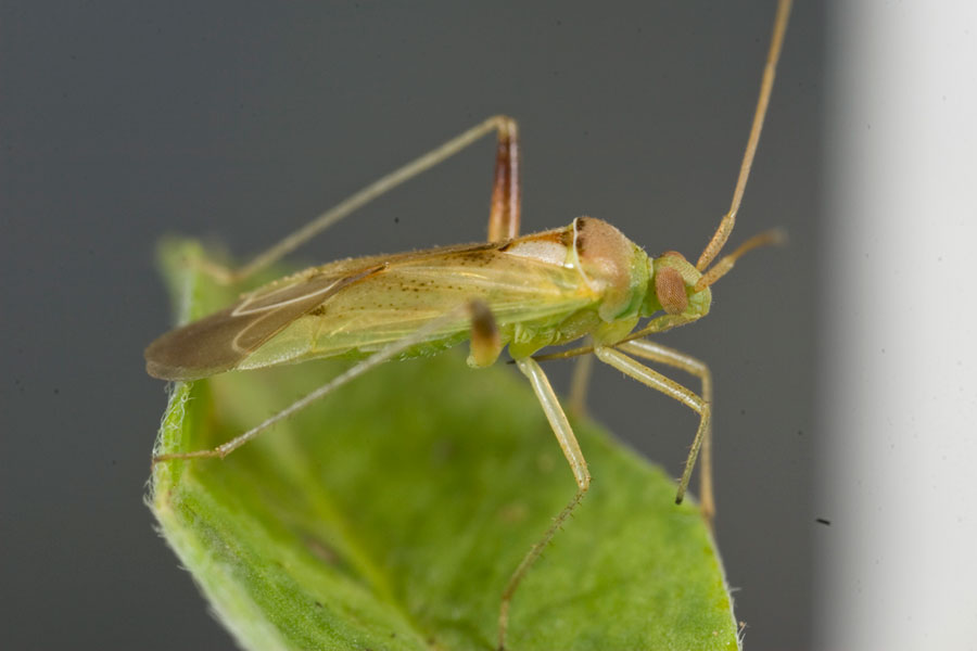 Green mirids attack many agricultural crops including lucerne, cotton and pulses, as well as fruits and vegetables. Adults are light yellow-green in colour and approximately 7 mm long, with clear wings folded flat on their back. All stages have characteristically long antennae. Nymphs are pear-shaped, light green in colour and may be misidentified as aphid nymphs. Both adults and nymphs are highly mobile and will run or fly off quickly when disturbed. Green mirids feed preferentially on the growing points of plants which causes wilting, delayed maturity and decreased yields. They are most likely to be problematic during spring and summer in southern Australia.