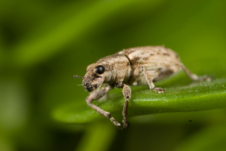 Sitona weevils attack lucerne, annual medics and subterranean clover. Adults make scallop-shaped notches in the leaves and chew the stems of seedlings. Larvae live in the soil and feed on root hairs and root nodules which can slow plant growth. Adults are 3 - 5 mm long, greyish-brown in colour with three pale stripes on the thorax. They have a short, broad snout and they are capable flyers. Larvae are white, legless grubs up to 5 mm long. Eggs are laid in autumn, larvae hatch and feed through winter into spring, then pupate in the soil and emerge as adults in late spring/early summer. Adults are active from spring to autumn.