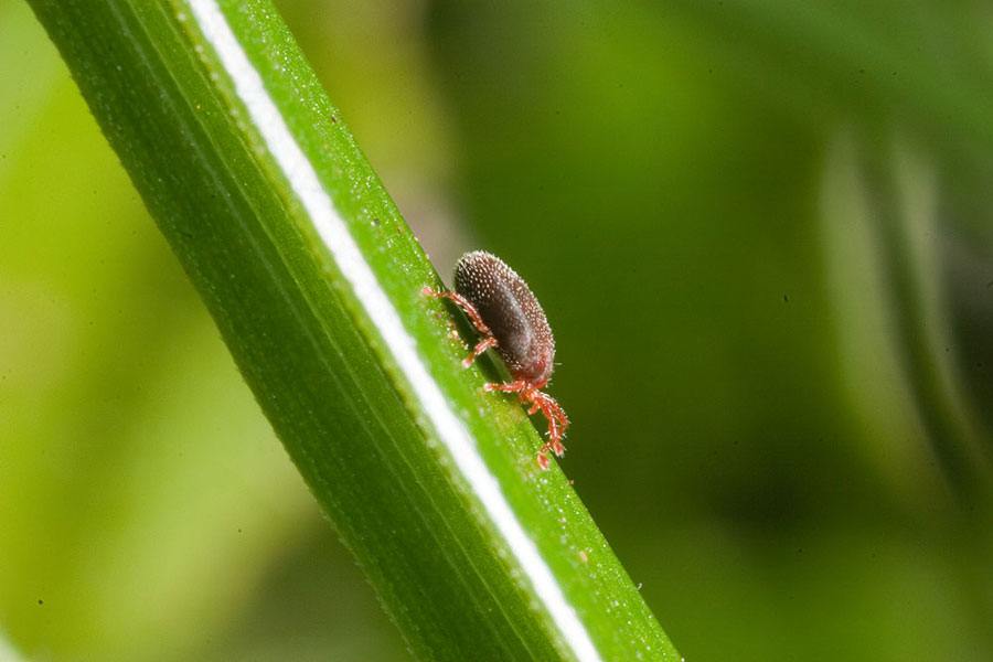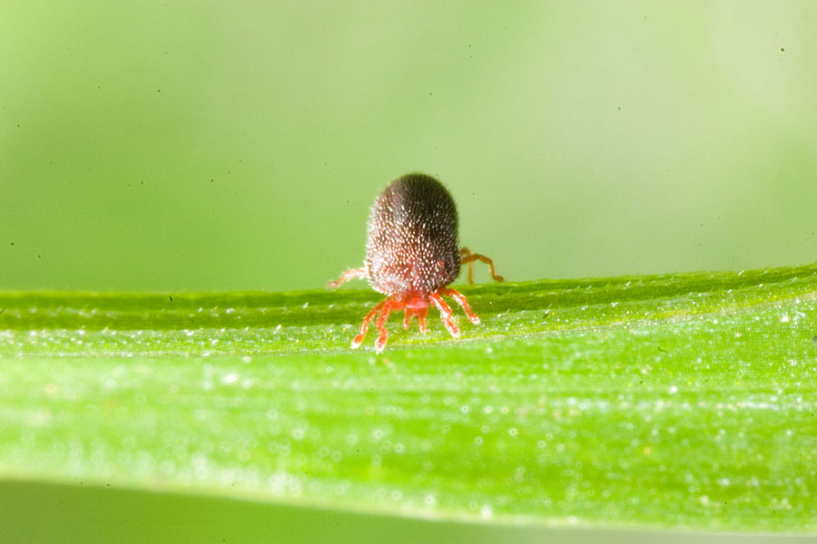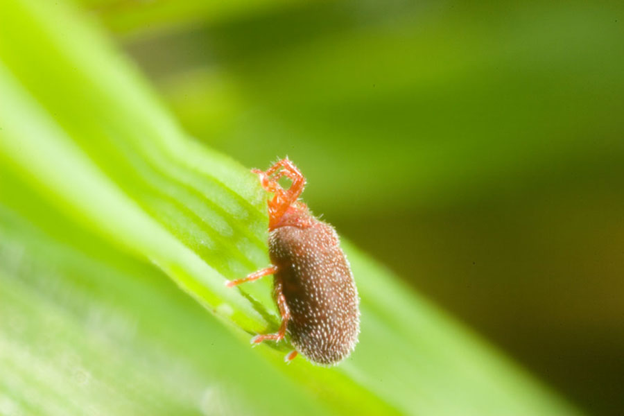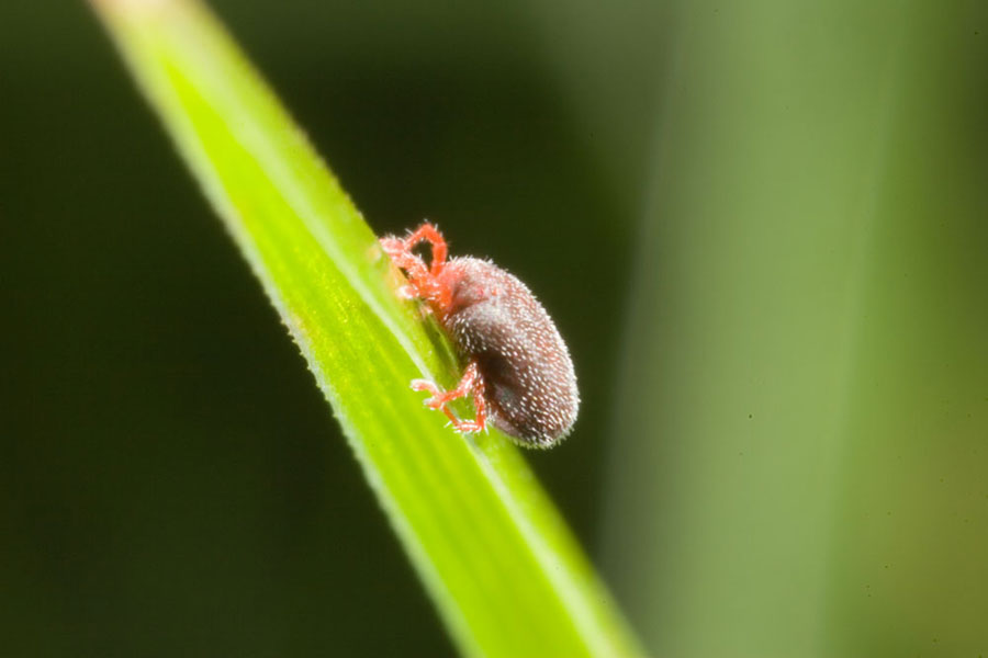 Balaustium mites have recently been identified as emerging pests within the Australian agricultural industry. They attack many crops and pastures, but canola, lupins and cereals are the most susceptible. Balaustium mites are often confused with other mite pests. Adults grow to be twice the size of the redlegged earth mite, about 2 mm in length. They have a rounded red-brown coloured body, densely covered with stout hairs, with orange-red legs. Balaustium mites are more tolerant to a range of organophosphates and synthetic pyrethroids compared with other mites.