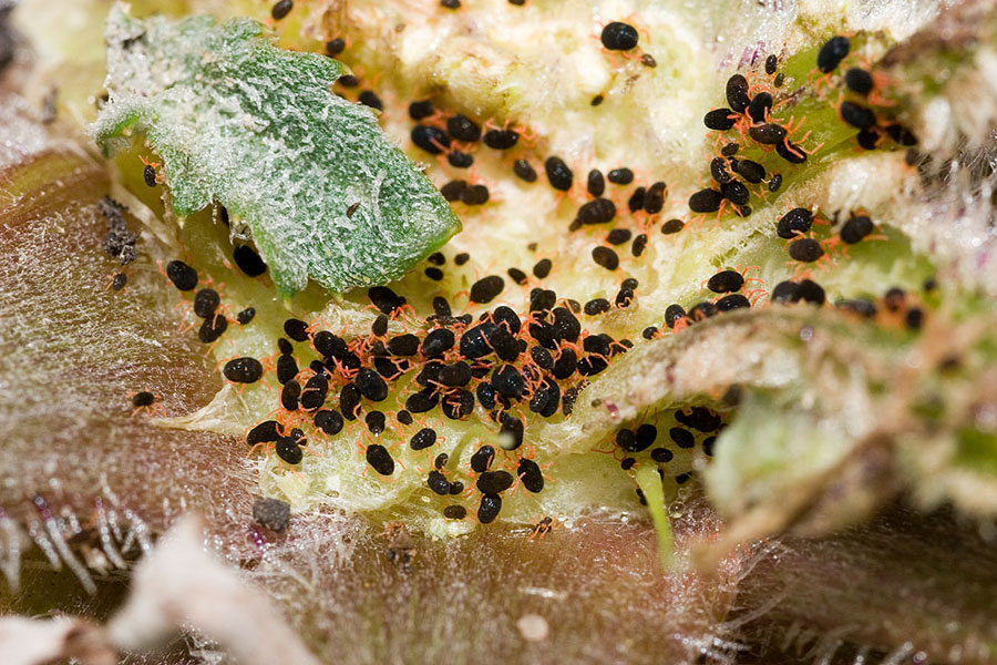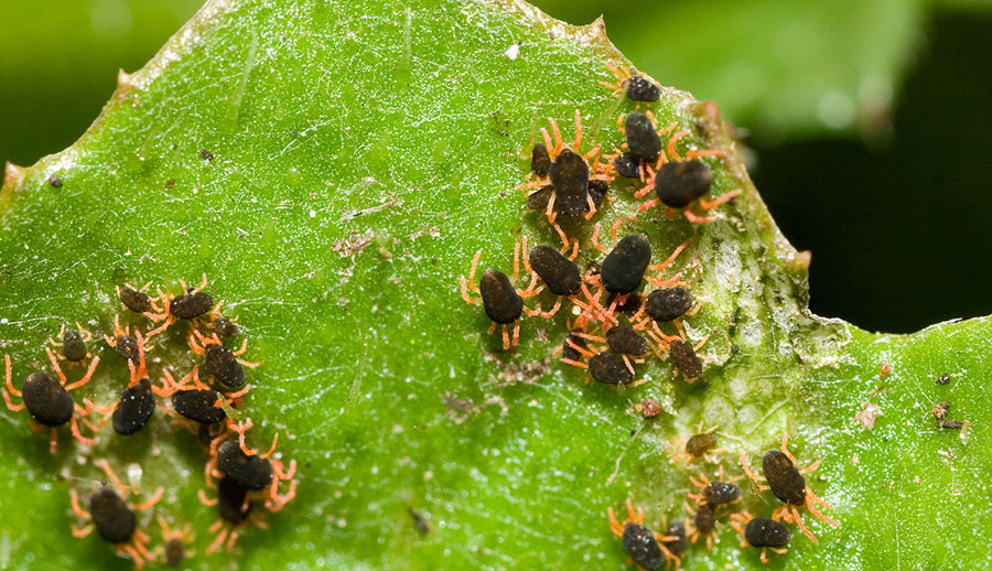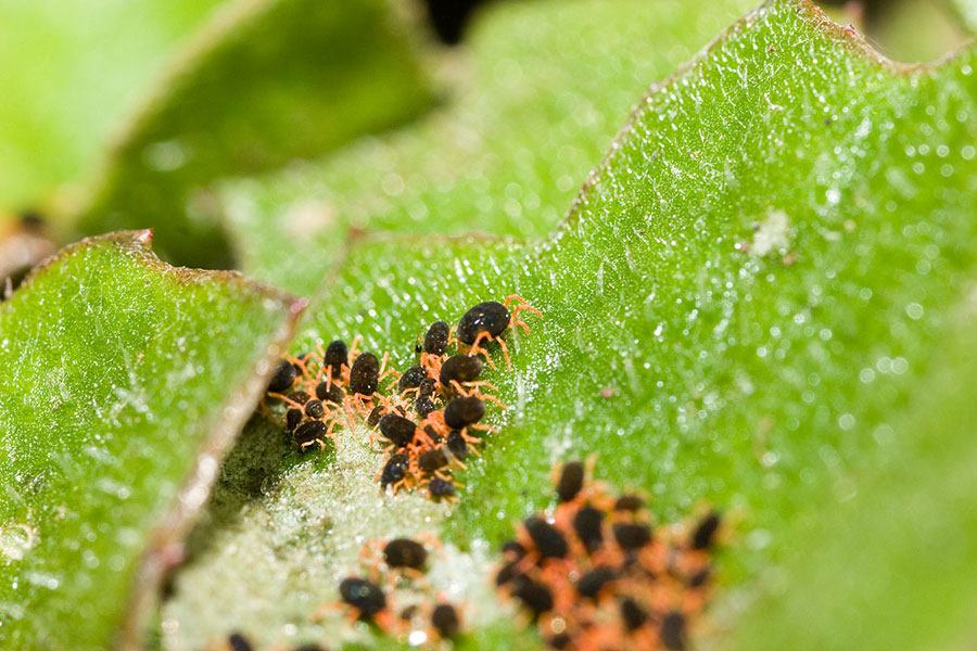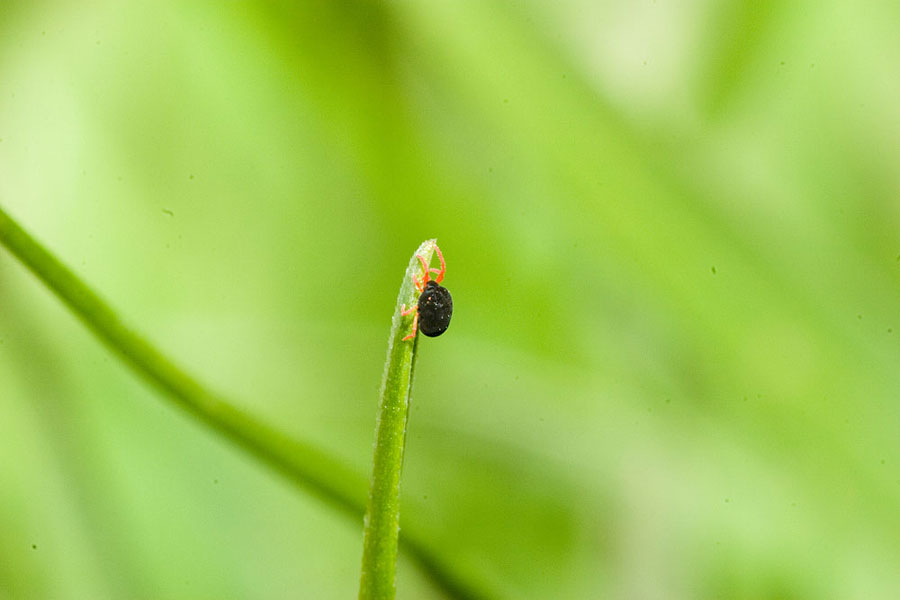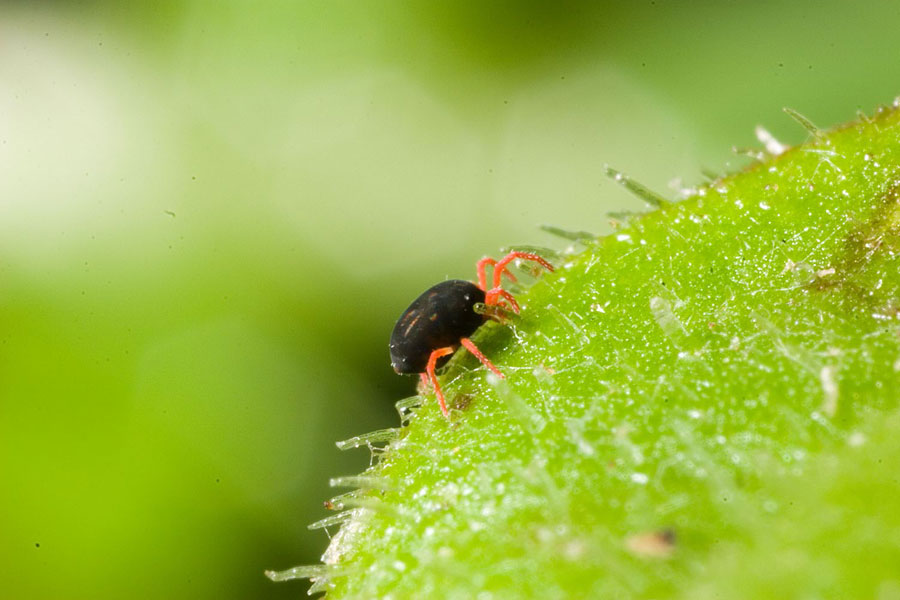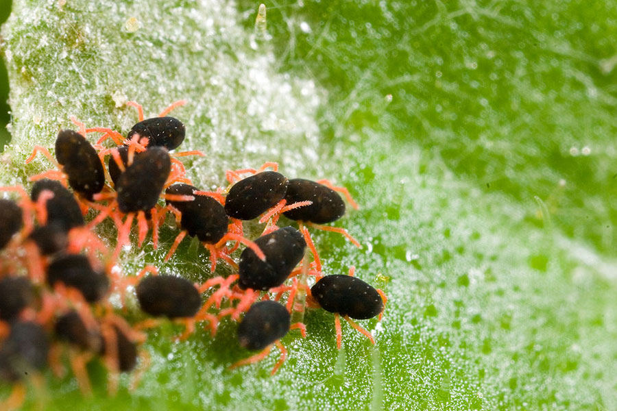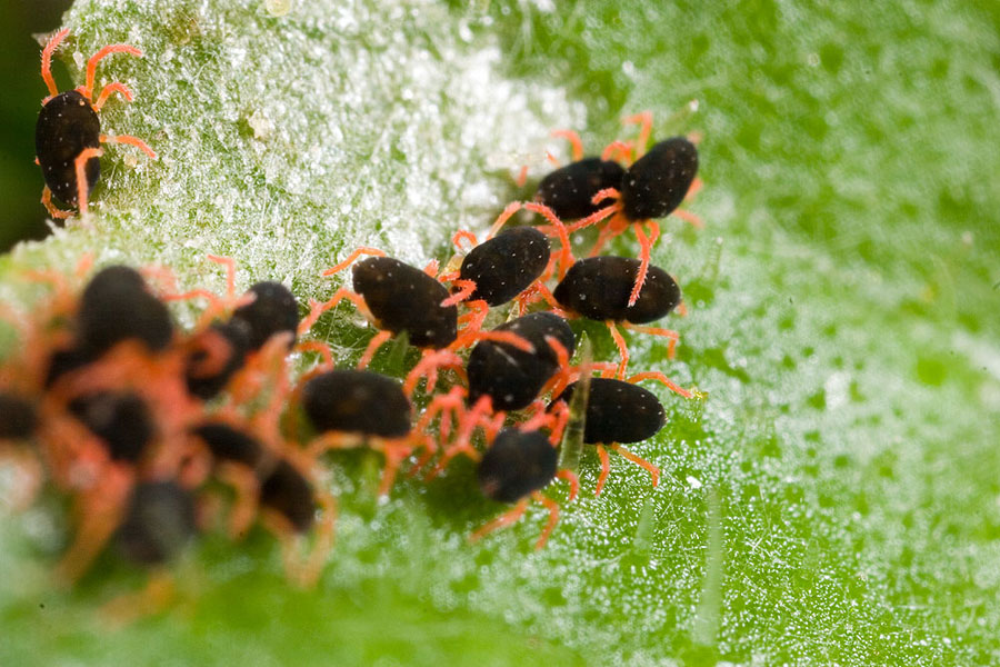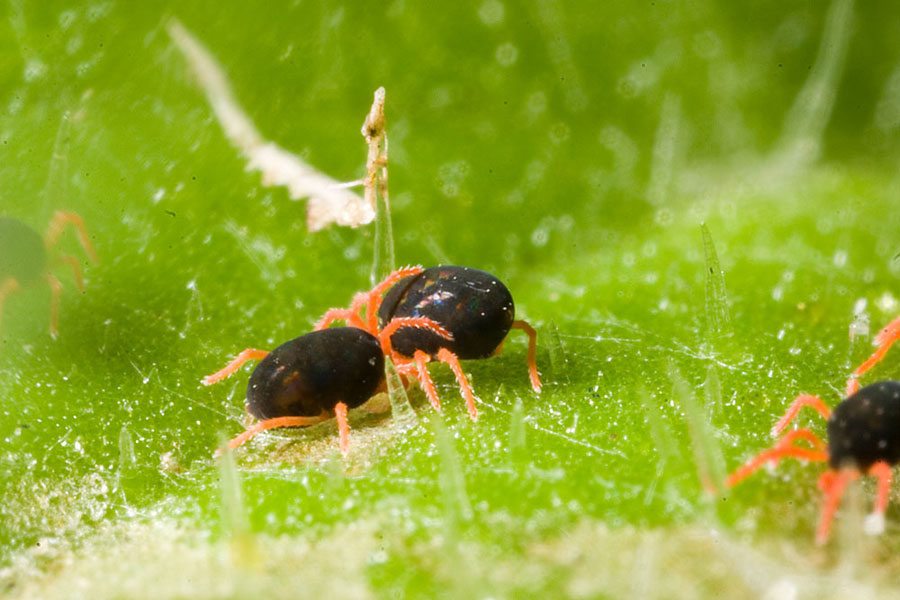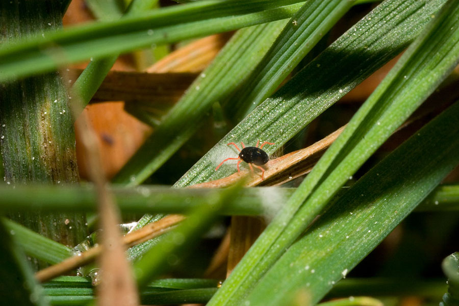 Redlegged earth mites are perhaps the most important invertebrate pest species in Australian agriculture. They attack a variety of crops and pastures, including cereals, oilseeds, legumes and fodder crops. They can also survive on a variety of weeds, particularly broad-leaved weeds. Adults are 1 mm long and have eight red-orange legs. Adults and nymphs have a velvety black body. Newly hatched mites are pinkish-orange with six legs and are only 0.2 mm long. Mites are active from autumn to late spring and are found in southern Australia, but not in northern NSW.