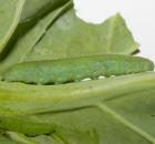 Larvae are up to 30 mm long and velvety green in colour with a faint yellow stripe running along the back and each side of the body. They attack canola and other brassica crops by chewing large irregular holes in the leaves. Adult butterflies have creamy white wings with one or two black spots, and a wingspan of approximately 40 mm. Their life cycle is largely dependant on environmental temperatures. Egg-laying ceases in winter and increases in spring, and they are most commonly found in crops during the warmer months.