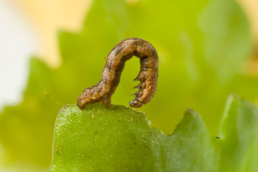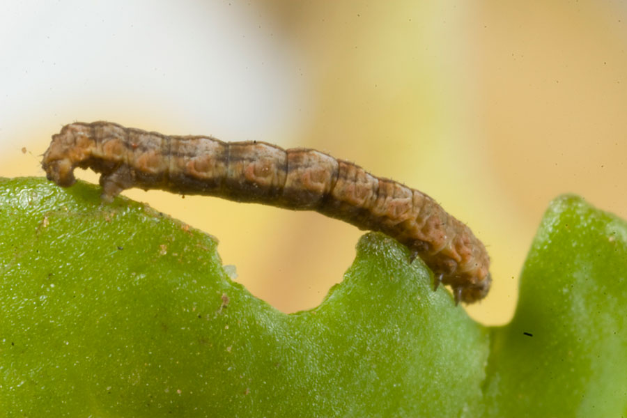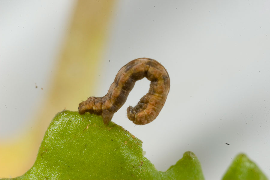 The Subidaria moth is native to Australia and belongs to the Geometridae family. The adult moth of this species is brown with light and dark bands across the wings. The moths have a wing-span of about 20mm. Larvae are typically mottled brown to dark yellow in colour, and plump in appearance.