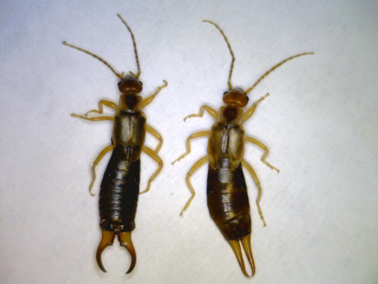 The European earwig has a dark and relatively uniform body color with yellowish shoulders, legs and pincers. They range in size from 12-24 mm long. They have flat smooth elongated bodies and may be winged or wingless. Winged earwigs have two sets of wings, a short hardened forewing and a soft membranous hindwing. They have chewing mouthparts, bead-like antennae and 2 pincers at the rear of the body. They predominantly canola, but will also attack cereals, lupins and some legume crops.