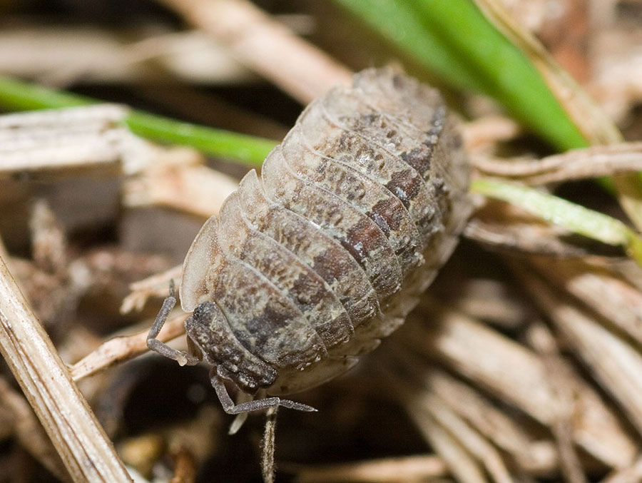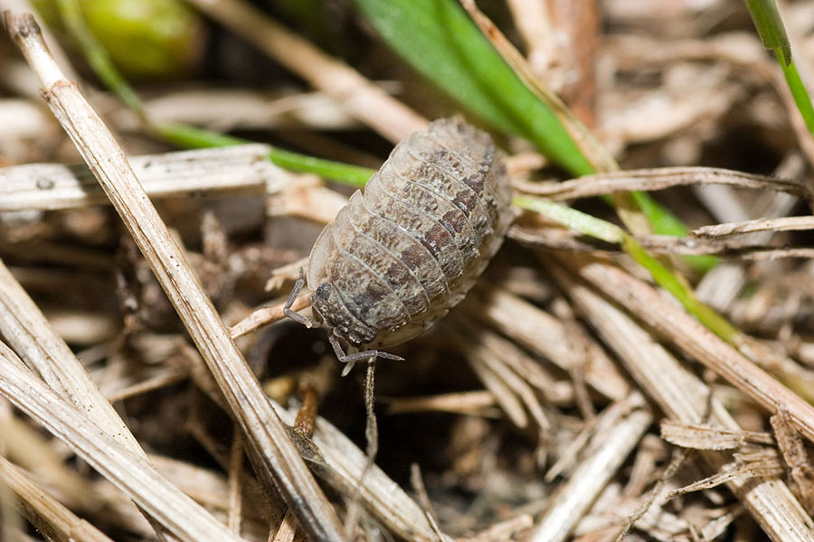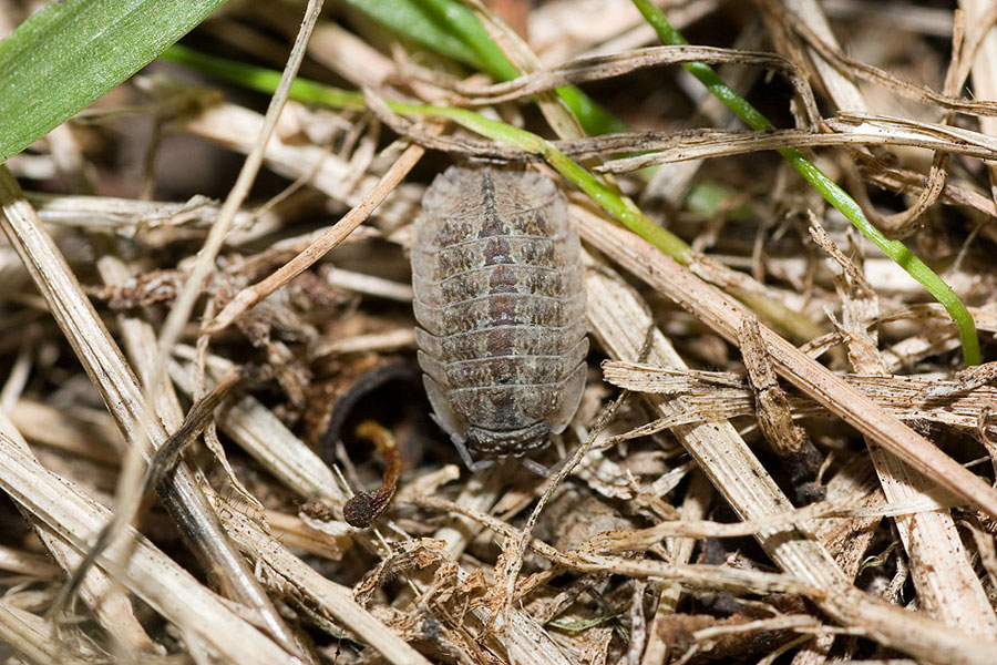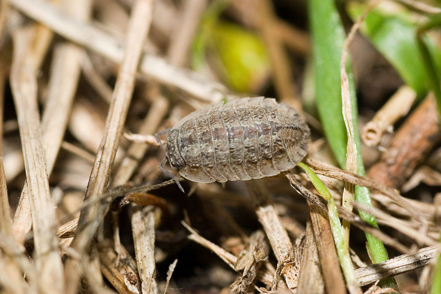 The flood bug is a slater that is endemic to Australia and a minor pest of cereals at establishment. Contrary to common belief, slaters are crustaceans, not insects. They have a hard skeleton on the outside of their bodies and many pairs of jointed legs. Adult flood bugs are approximately 7-9 mm long and 4-6 mm wide. They are oval shaped and have a flattened body, with light coloured legs. The body is light brown in colour, with a dark brown head markings down the middle.