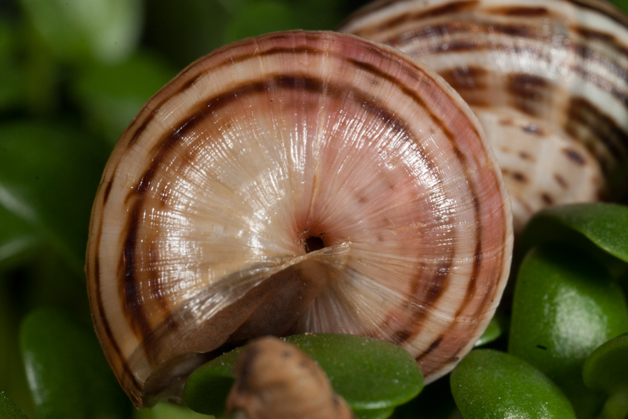 Adult snails are up to 30 mm in diameter and have a white shell with broken brown bands in the line of the spiral. They feed on organic matter and green plant material of pastures and emerging crops, and can also contaminate grain at harvest. With the onset of warm weather snails go into a resting state (aestivation), after they have ascended vertical surfaces such as shrubs or cereal plants. Most snails die during aestivation from summer exposure. The ones that do survive can be particularly damaging to crops and emerging pastures the next season. They become active following late-summer/autumn rainfall and can eat up to three times their weight daily.