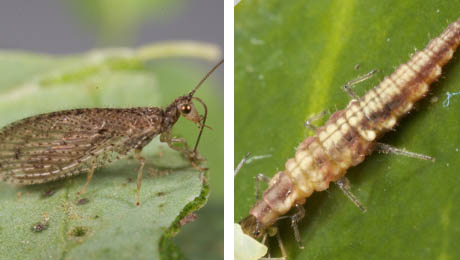 Adult brown lacewing (left) and larvae (right) (Source: cesar)