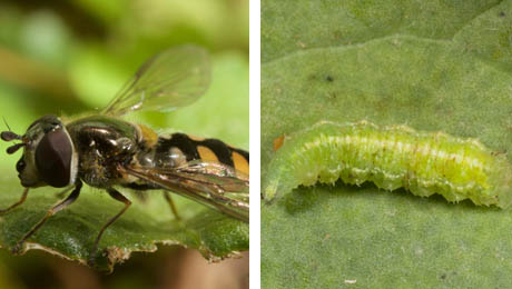 Hover fly adult (left) and larvae (right) (Source: cesar)