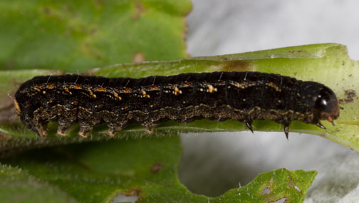 Brown pasture looper has been attacking a variety of crops (and weeds) this winter.
