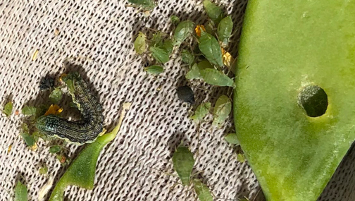 When eggs hatch, ensuing caterpillar populations will feed on pods and flowers.