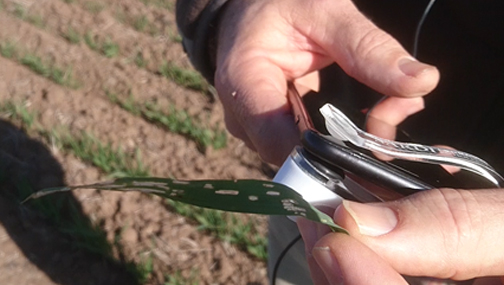 Lucerne flea damage in cereals. Image: cesar
